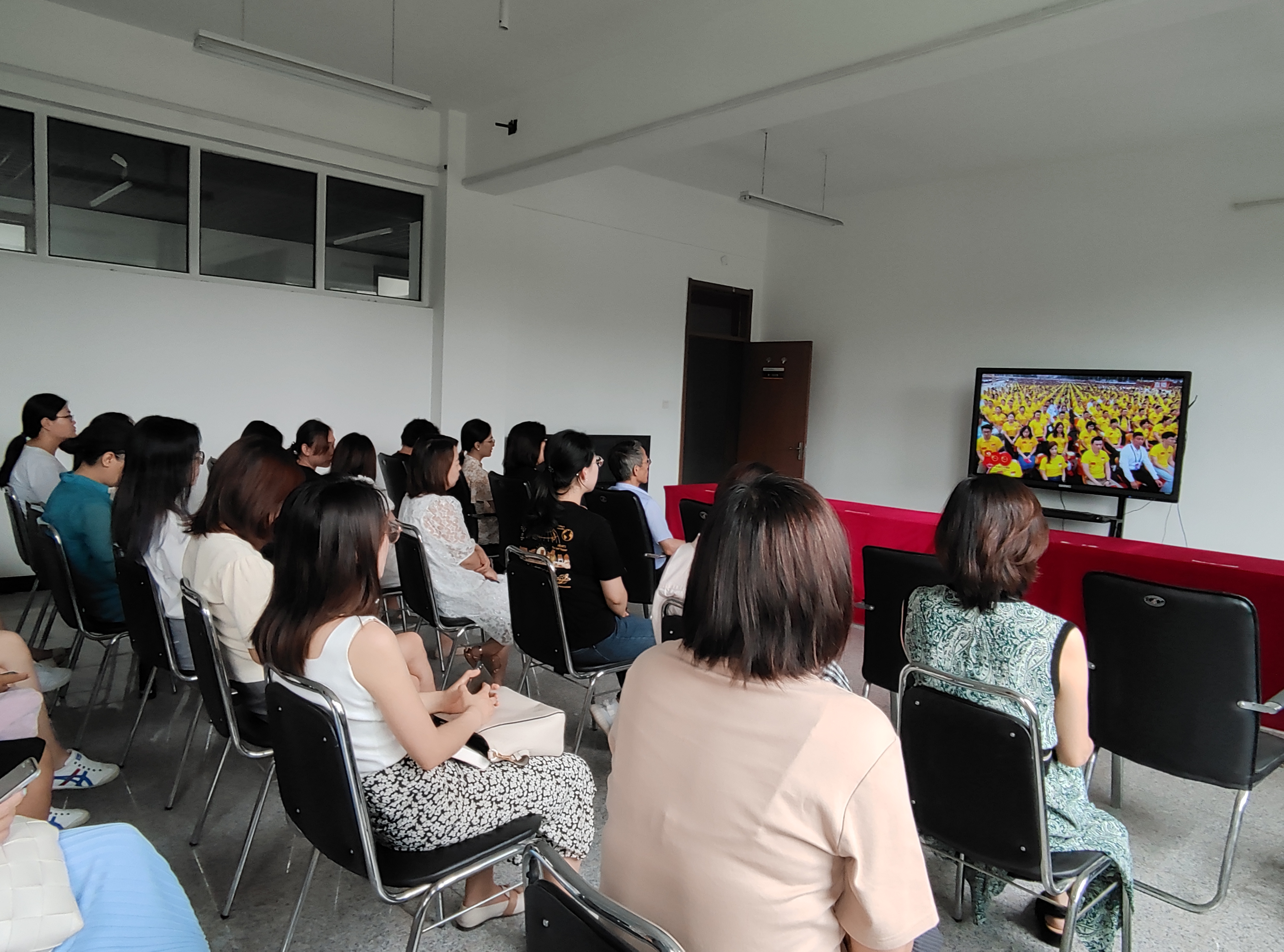 7月1日8:00,365英国上市公司全体教职员工在学院第一会议室集体观看“庆祝中国共产党成立100周年大会”。