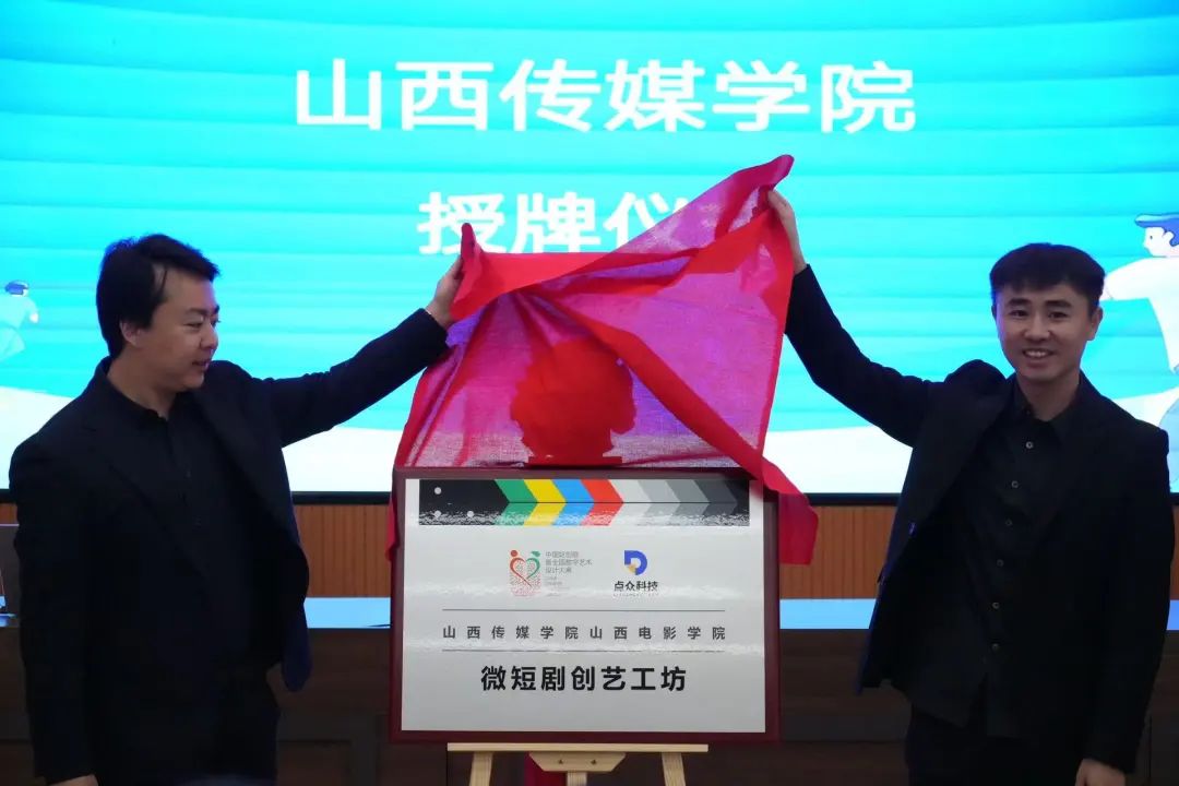 圆桌论坛上,各位行业专家自由发言,为学院戏剧影视学科如何取得更好发展建言献策。国内最大的微短剧平台点众科技负责人路升,为365英国上市公司颁发了“微短剧创艺工坊”的牌匾。