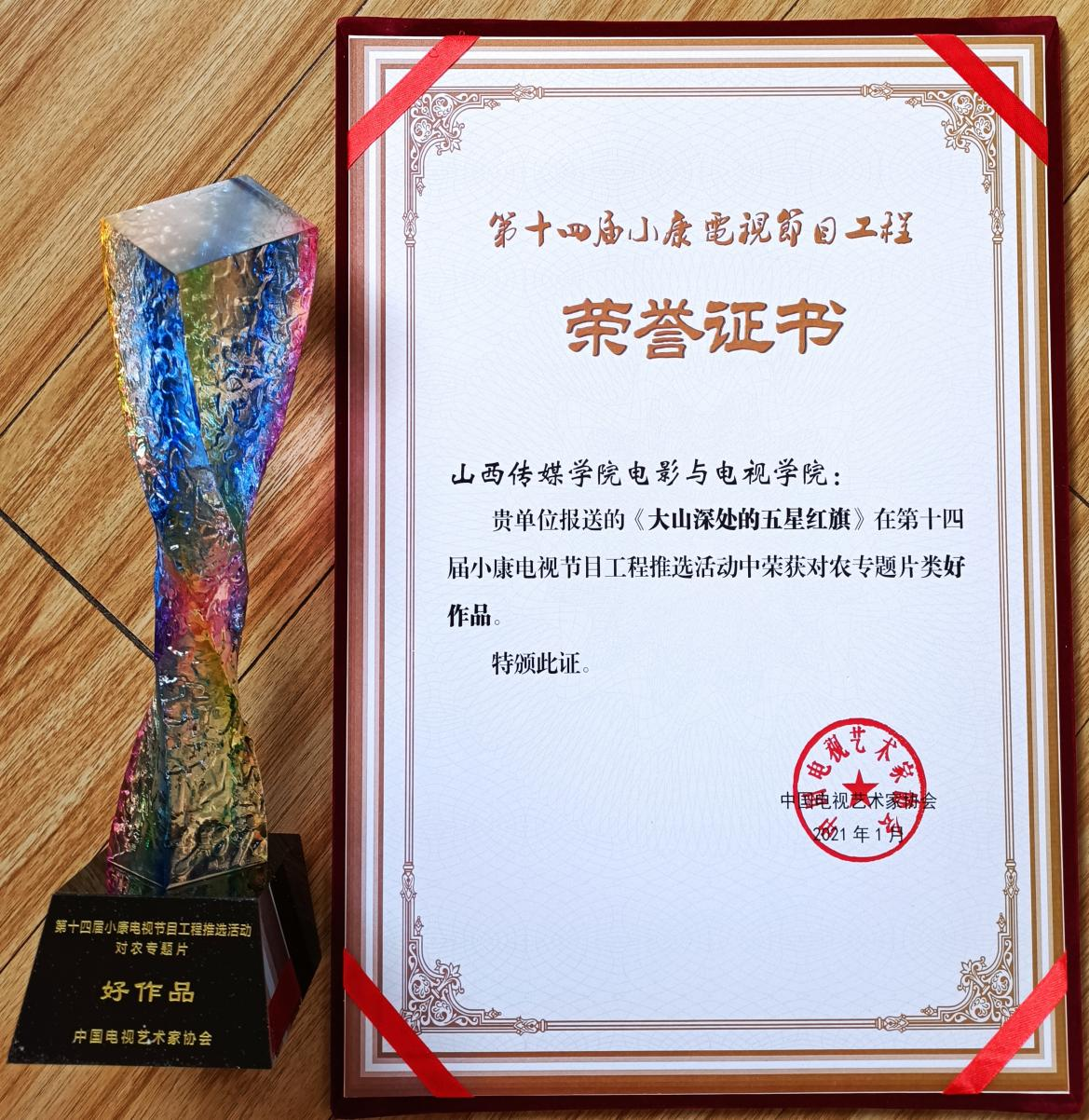 2021年1月11日,“筑梦小康”第十四届小康电视节目工程推选活动在北京成功举办,我校电影与电视学院电视编导方向师生在此次活动中成绩优异,共有2部作品获奖。分别是《沉罟捕冬》和《大山深处的五星红旗》,它们分别荣获对农专题片类优秀作品和好作品。