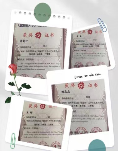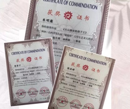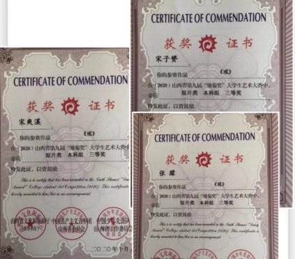 第九届“雏菊奖”大学生艺术大赛电影与电视学院同学获奖的作品总数为11个,其中,由秦秀宇老师指导,何博雅等主创的《无言》获得大赛一等奖,张静老师指导的《恶意》(孙士淇等主创)以及秦秀宇老师指导的《石刻匠心》(孔诗雯等主创)、《坐看云起时》(卞国蕊等主创)、《红色记忆》(王寒冰等主创)共4部短片获得大赛二等奖,除此之外还有王海滨老师指导的《寻》(王凤等主创)以及秦秀宇老师指导的《候》(张雯婷等主创)、《小王国》(向羽等主创)、《大山深处的孩子王》(张家宁等主创)、《再燃窑火》(徐馨等主创)、《戒》(宋子赞等主创)共6部短片获得大赛三等奖。