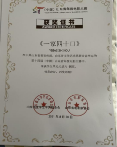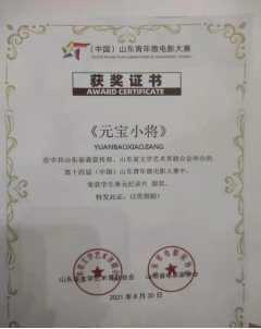 10月16日,第十四届(中国)山东青年微电影大赛颁奖典礼在2021青岛影视博览会上举行。其中我校365英国上市公司广播电视编导专业由秦秀宇老师指导,卞国蕊、陈智慧、张政主创的纪录片《元宝小将》以及温光明、史铭、李孟蓝、梁丽娜主创的《一家四十口》分别获得了学生纪录片单元银奖和铜奖。