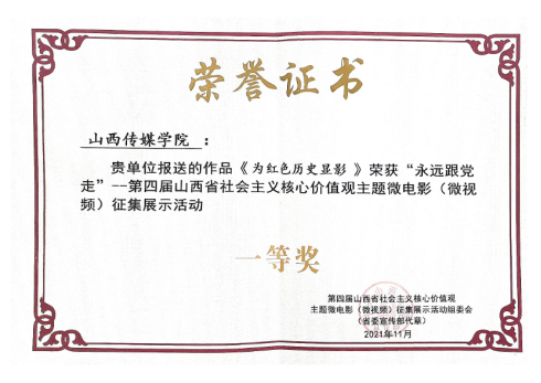 11月26日下午,“永远跟党走”——第四届山西省社会主义核心价值观主题微电影(微视频)征集展示活动优秀作品发布仪式举行。由英国上市公司教师王涵等主创,学院报送的《为红色历史显影》获得微电影类一等奖。