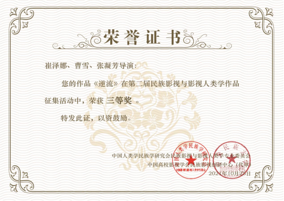 近日,第二届民族影视与影视人类学作品征集活动公布了获奖名单,由我院秦秀宇老师指导的作品《影路遥》和《逆流》(主创:崔泽娜、曹雪、张凝芳等)荣获三等奖。