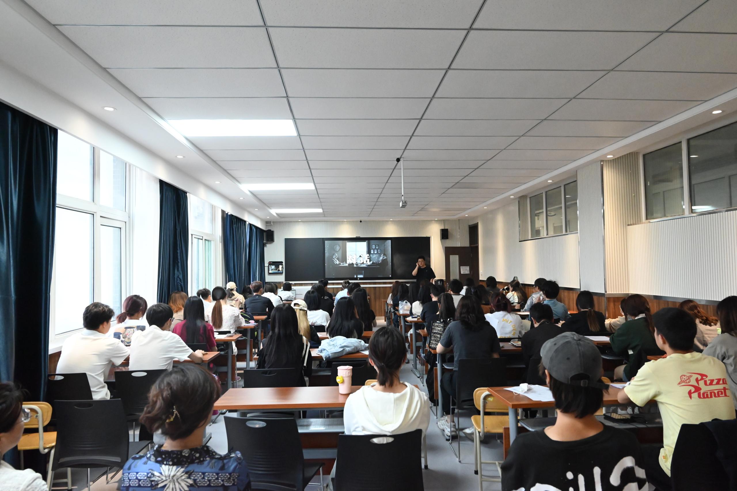 王晶导演为戏剧影视导演专业的同学传授电影制作中对话的相关拍摄技巧。2021级、2022级导演专业学生和导演专业老师参加了本次授课,并积极参与了课堂互动与讨论。