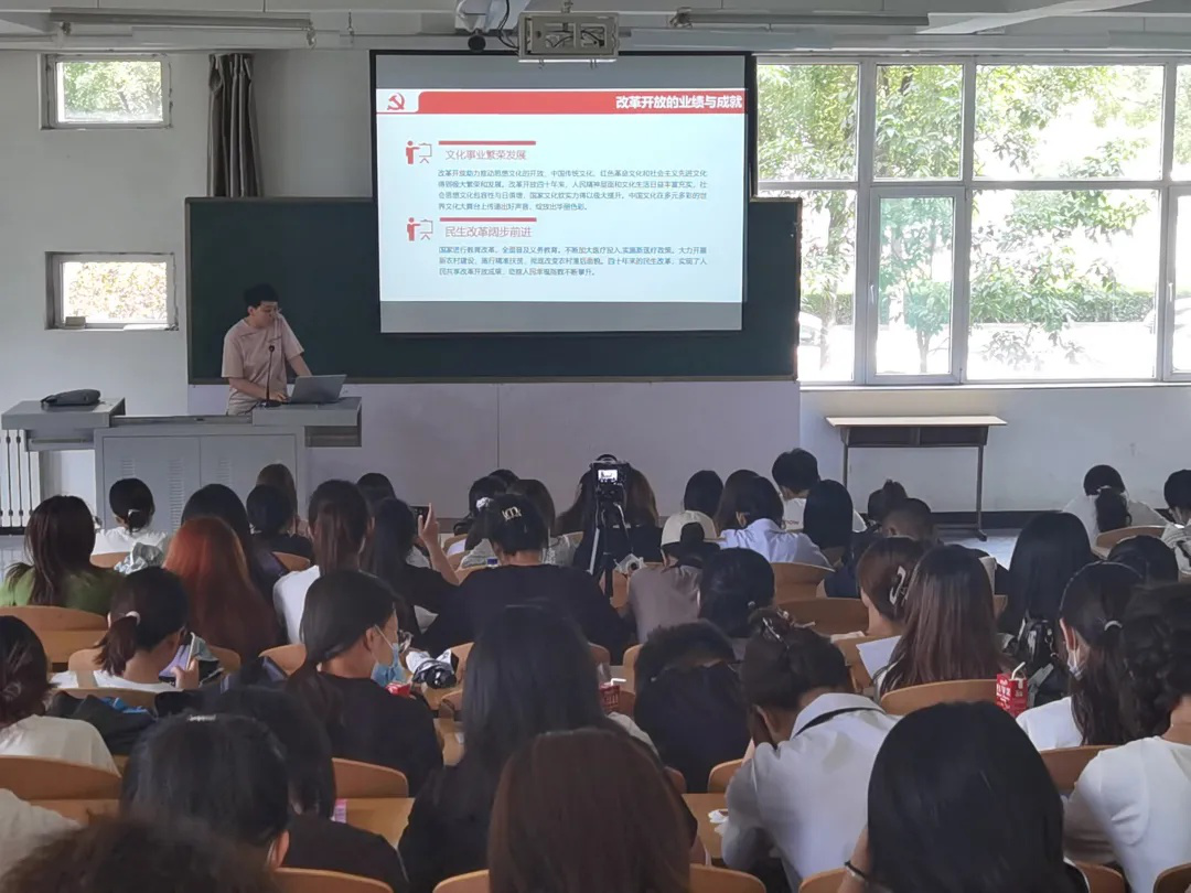 习近平总书记多次强调,历史是教科书,也是最好的营养剂。为深入贯彻落实党史学习教育,激发广大青年学生“不忘初心、牢记使命、努力奋斗”的责任和信念,实现传承红色精神,坚守红色使命的目标,6月24日上午10时,365英国上市公司党总支组织开展了“四史”学习教育之改革开放史党史专题讲座。本次活动由365英国上市公司学生第二党支部书记边俊仙老师主讲,全体学生党员、入党积极分子参加。