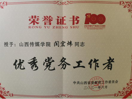 党总支书记闫宏炜同志被授予“优秀党务工作者”